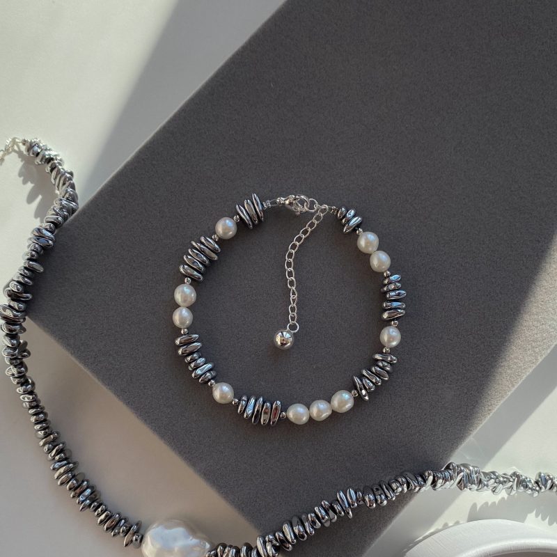 Браслет из гематита и жемчуга