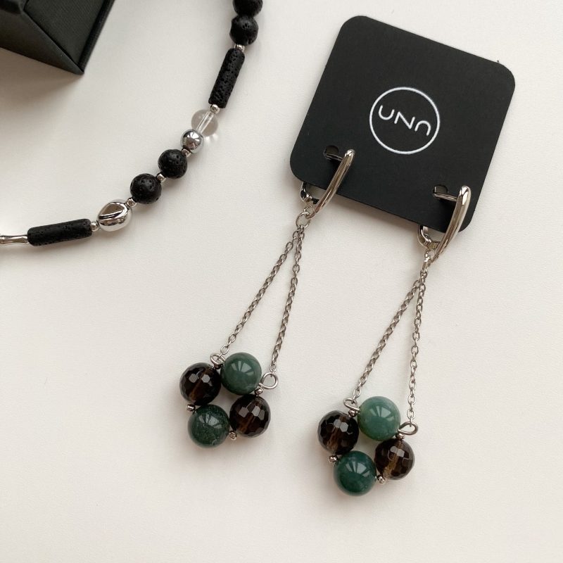 Серьги из агата и дымчатого кварца