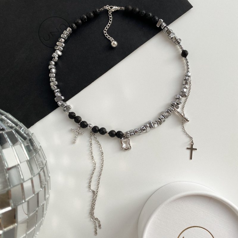 Чокер из гематита и вулканической лавы