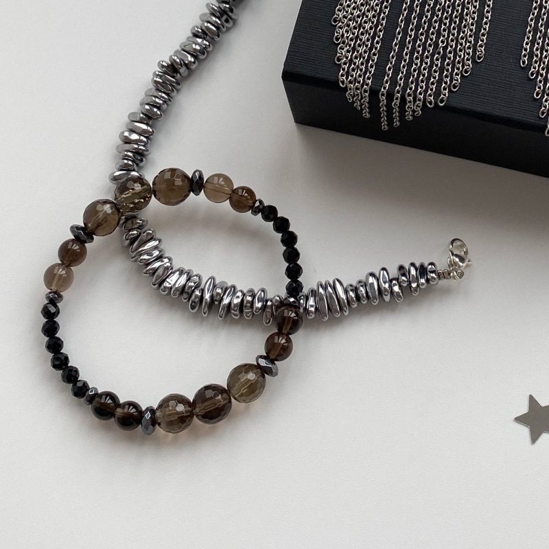 Браслет из гематита, шпинели и дымчатого кварца