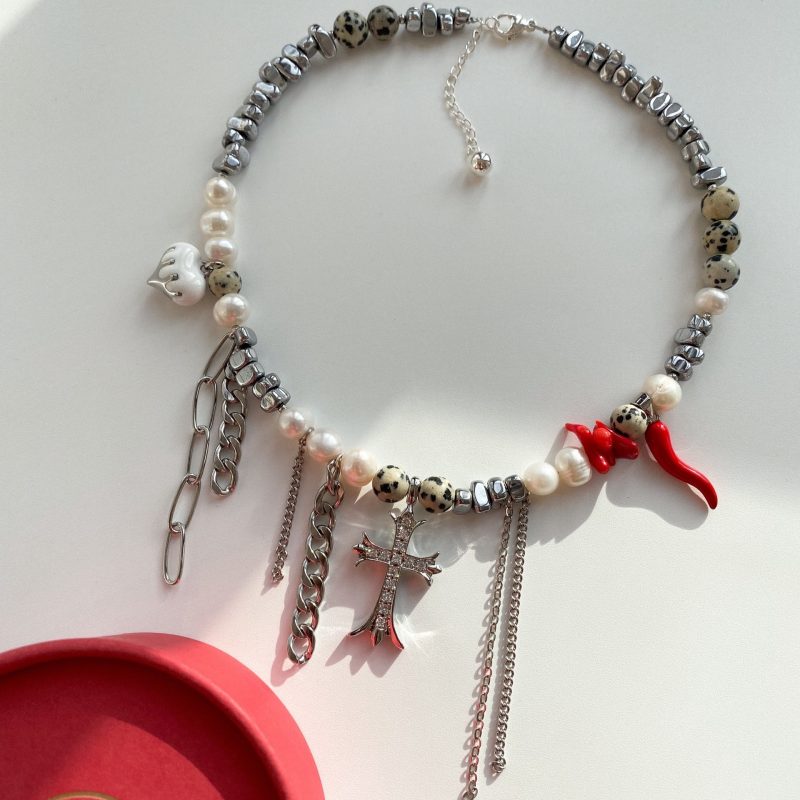 Чокер из жемчуга, коралла, яшмы и гематита