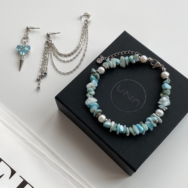 Браслет из ларимара и жемчуга