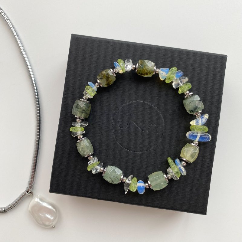 Браслет из пренита и тонированного кварца