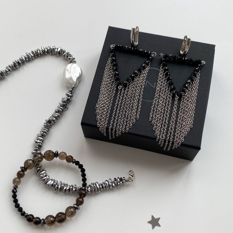 Серьги из хрустального стекла и гематита