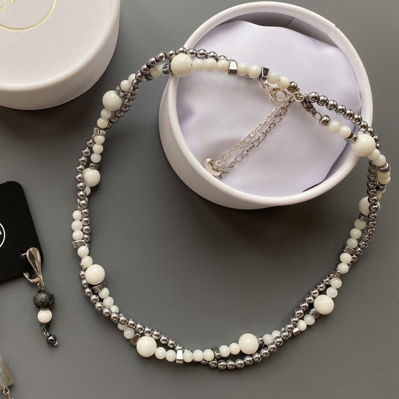 Комплект чокеров из гематита и агата