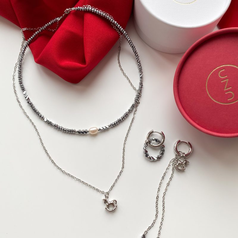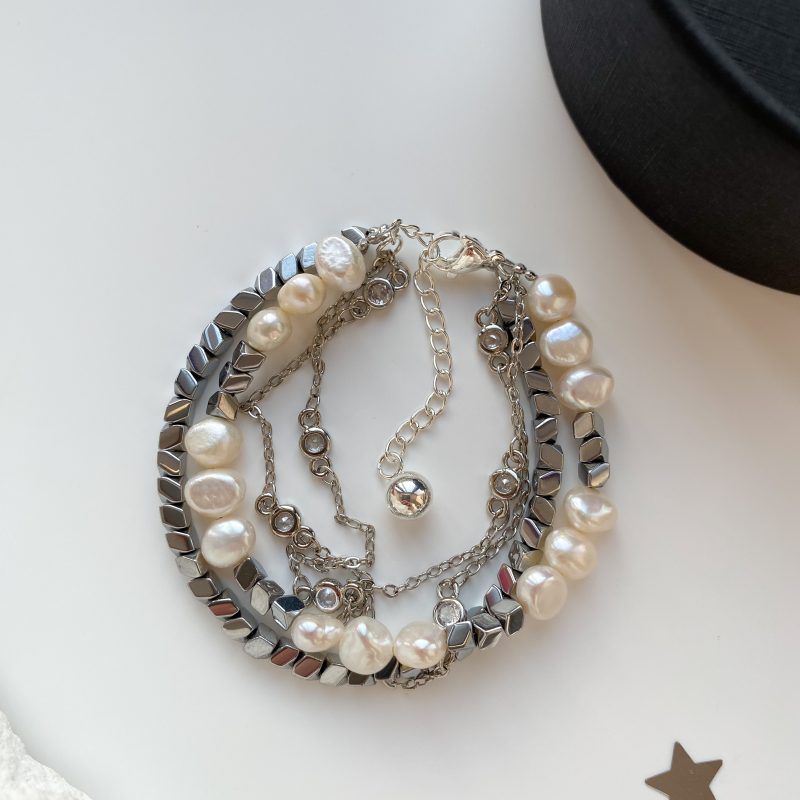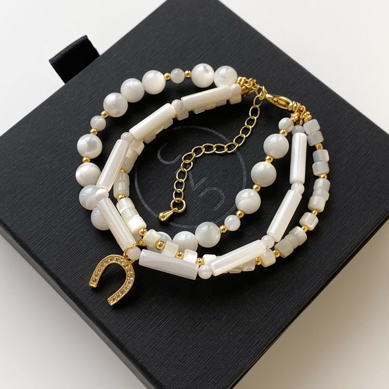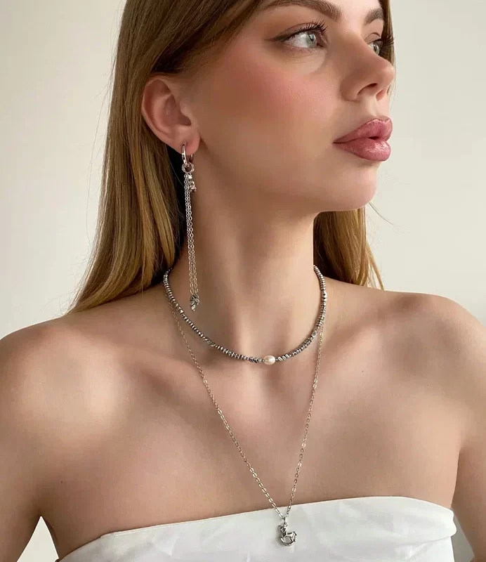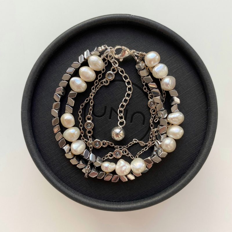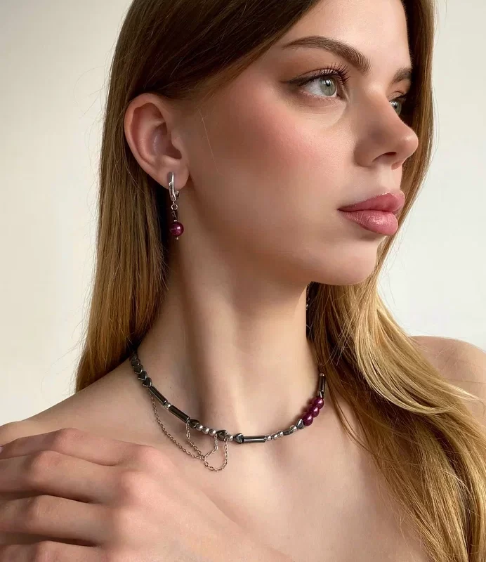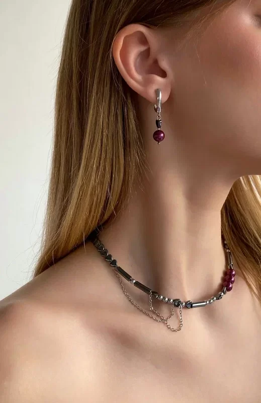 Комплект чокеров из жемчуга Майорка, натурального жемчуга и гематита