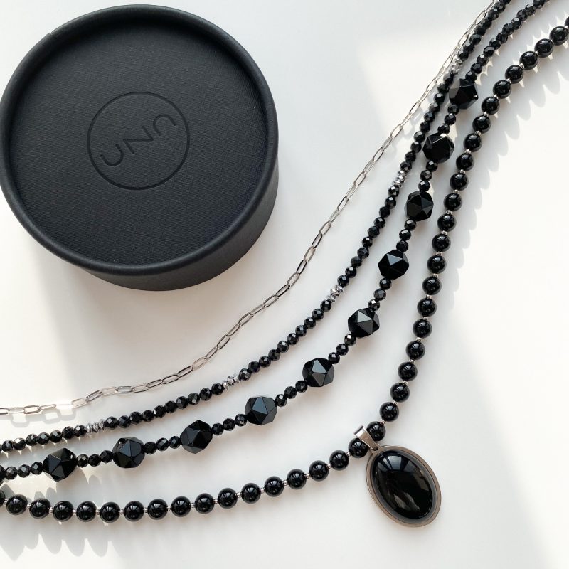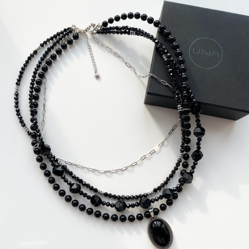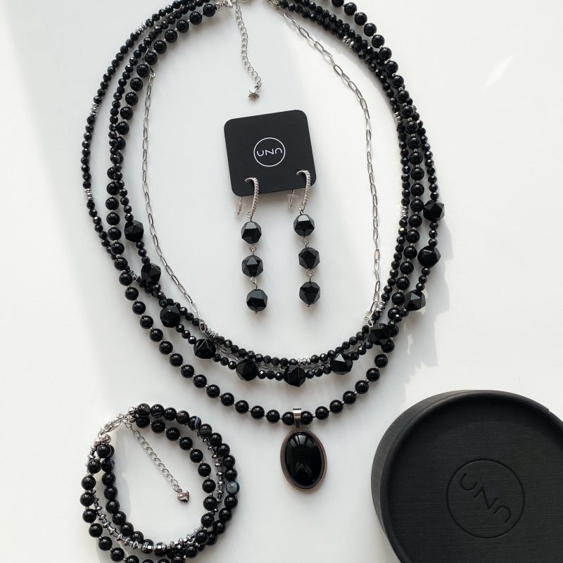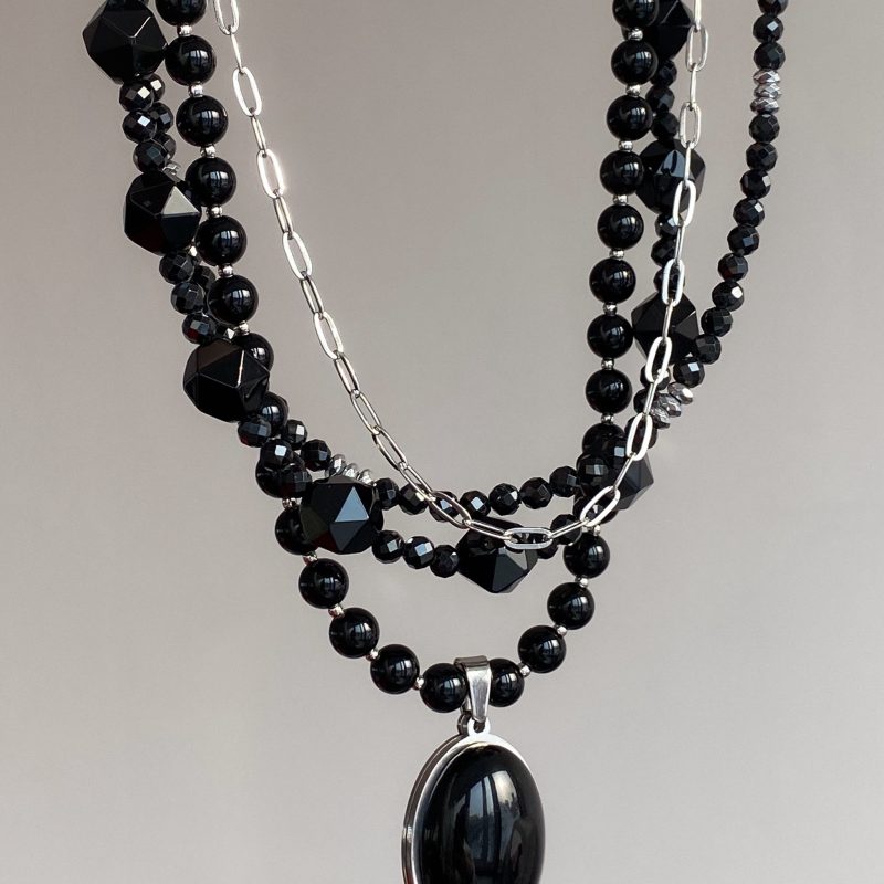 Чокер из вулканической лавы, гематита и горного хрусталя