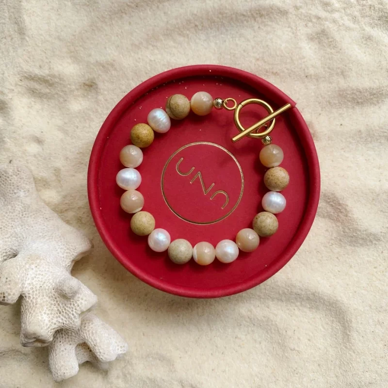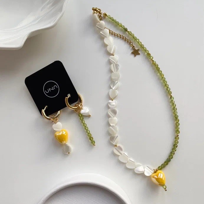 Комплект чокеров из граната, жемчуга, розового кварца и лунного камня