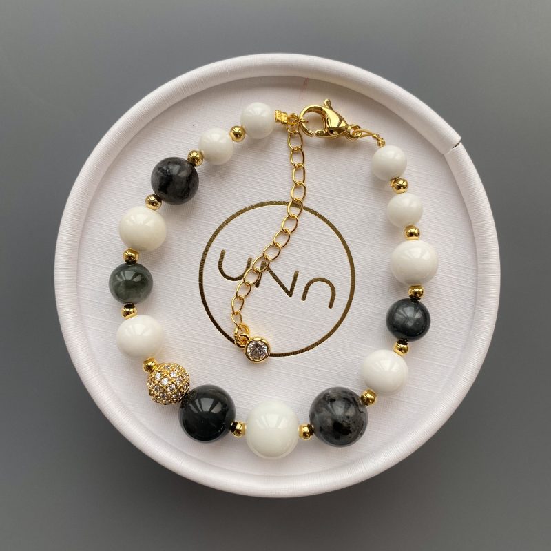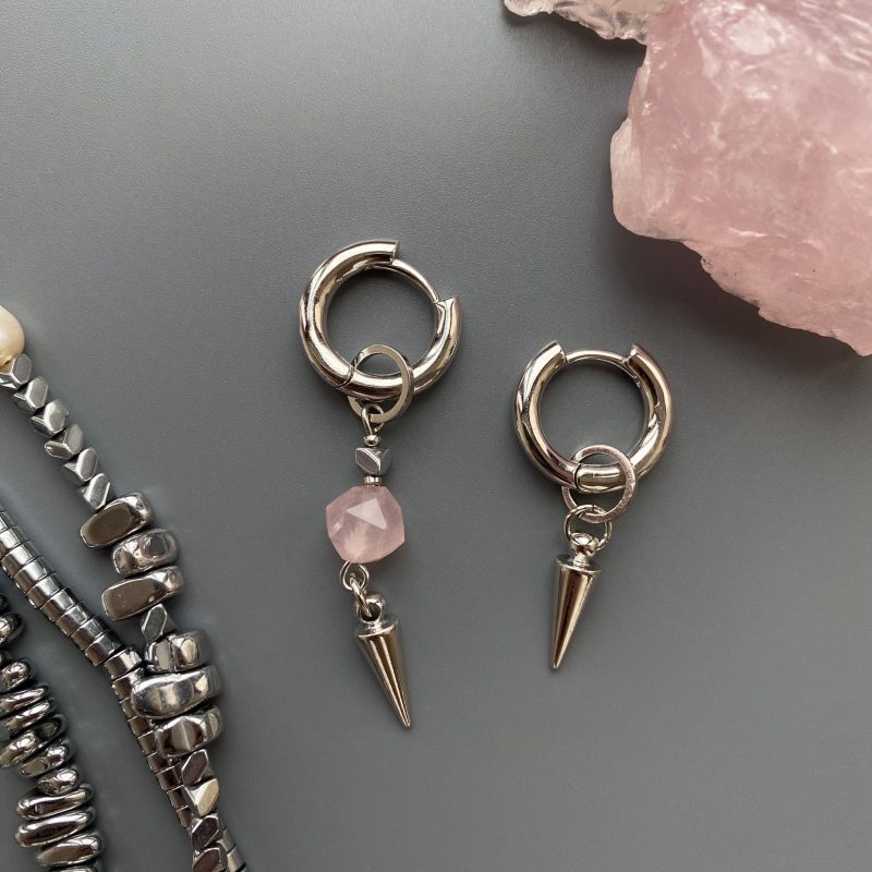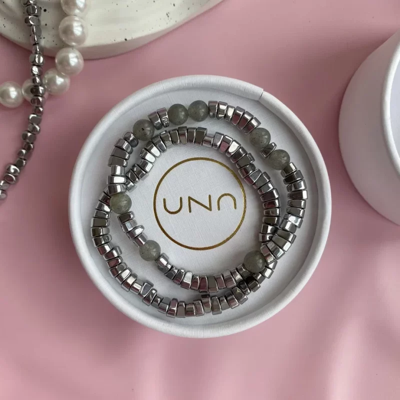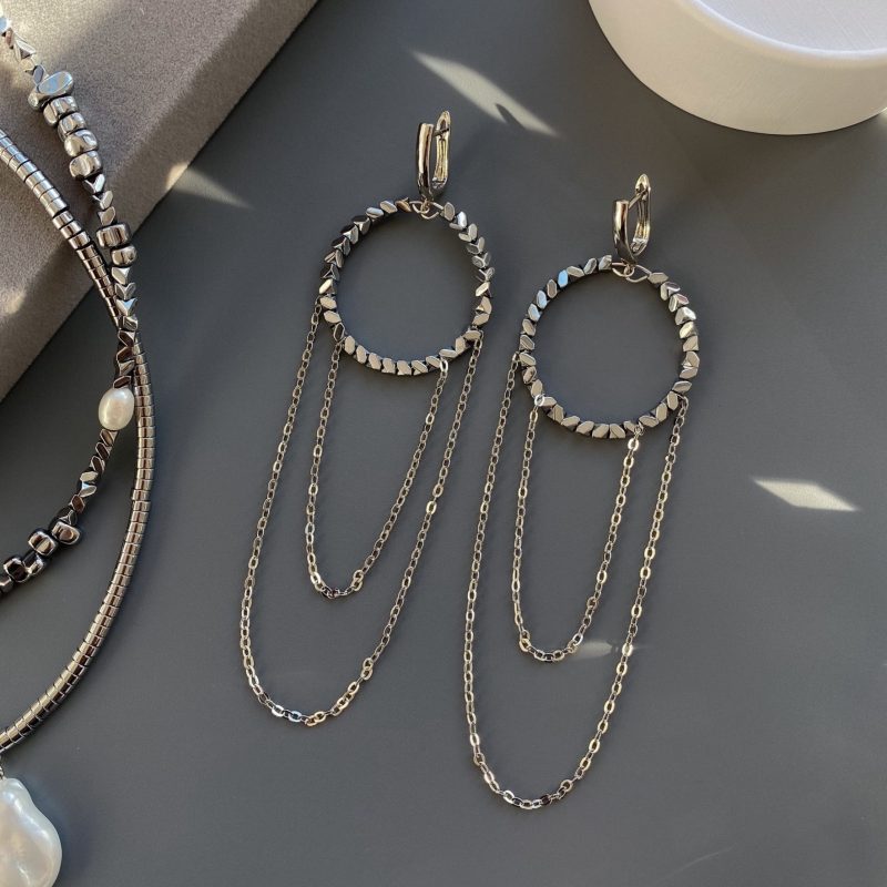 Чокер из вулканической лавы, гематита и горного хрусталя